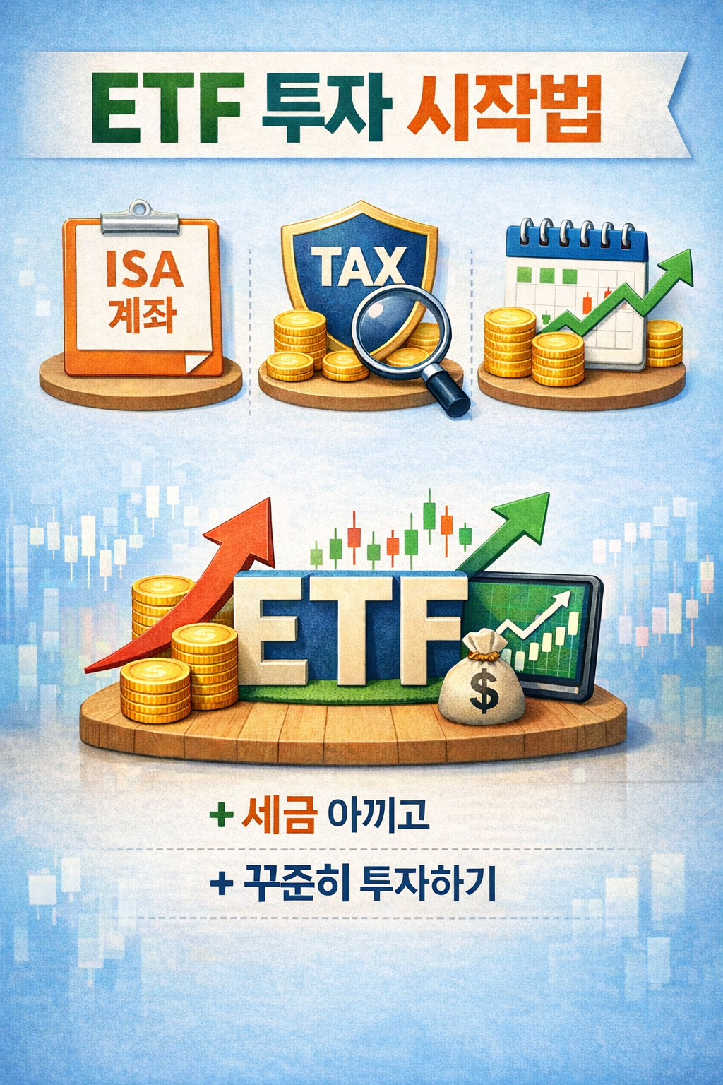 ETF 투자는 화려한 수익률보다 꾸준함이 핵심입니다. 제가 깨달은 건 단기 수익에 집착하기보다, 시간을 내 편으로 만드는 게 훨씬 현명하다는 점입니다. 지금 당장 ISA 계좌를 만들고, 매달 부담 없는 금액으로 ETF를 모아가 보세요. 10년, 20년 후 여러분의 계좌는 지금과는 비교할 수 없을 만큼 든든해져 있을 겁니다.